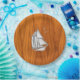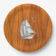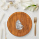 Escena de velero cromada de plata en un decorado de fondo de madera de teca. Un auténtico regalo náutico moderno.