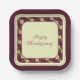 Plato De Papel Pluma Borgoña Y Plaza De La Crema