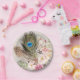 Plato De Papel Pluma elegante del pavo real de Boho y placa de