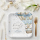 Estos adorables placas de papel cuadrado We Can Bearly Wait Boy Baby Shower 9" serían tan lindos en la ducha de bebé de su ser querido. Presentan a un niño oso de peluche en un globo de aire caliente rodeado de estrellas azules y morenas y dicen "Podemos esperar temprano". El diseño de las acuarelas es moderno y dulce. Parecerían fabulosos en sus mesas, buffet, mostradores y bar. Para hacerlos propios, seleccione "Personalizar esta plantilla" y escriba el nombre de la futura madre y la fecha de la ducha.