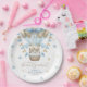 Estas adorables placas de papel redondo de Bebé Bebé Bearán Esperar a Bebé Bebé Espolvoroso de 9" serían tan lindas con la rociada de bebé de su ser querido. Presentan a dos niños osos de peluche sosteniendo globos en forma de corazón en un globo de aire caliente rodeado de estrellas azules y marrones y dicen "Podemos esperar temprano". El diseño de las acuarelas es moderno y dulce. Parecerían fabulosos en sus mesas, buffet, mostradores y bar.
