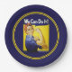 Aquí hay un conjunto de ocho placas de papel de 9" con una imagen de ese memorable poster de Rosie con un doble borde amarillo. Rosie es un ícono cultural de Estados Unidos, representando a las mujeres estadounidenses que trabajaron en fábricas durante la Segunda Guerra Mundial, muchas de las cuales trabajaron en las plantas de manufactura que producían municiones y suministros de guerra. A veces estas mujeres ocupaban puestos totalmente nuevos en sustitución de los hombres que estaban en el ejército. Rosie the Riveter es comúnmente usada como símbolo del feminismo y el poder económico de las mujeres.