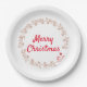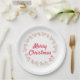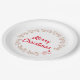 El trineo de Santa está siendo arrastrado alrededor del centro del plato por 36 renos. El centro del plato tiene el texto "Feliz Navidad" en letra roja.
