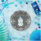 Placas de papel para la ducha para bebés con el ilustracion de un oso polar bebé con un gorra azul y una bufanda sobre un fondo inspirado en una pizarra rodeado de copos de nieve. Personalice el nombre.