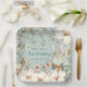 Plato De Papel Polvo Botánico de Conejo Cute Azul Primer Cumpleañ
