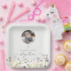 Plato De Papel Pradera rosa suave mariposa floral floral foto bau