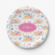 Plato De Papel Precioso patrón floral rosa monogramado