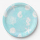 Estas hermosas platos de papel de tema playero azul y turquesa tienen un diseño de caballitos de mar, dólares de arena, conchas marinas y coral. Perfecto para una boda con tema de playa o baby shower.