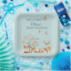 These adorable baby shower plates feature a woodland fox, sleeping bear, deer, birds and some mice all gathered around the base of a flowering tree. They're all wearing flowers in their hair for the party. Easy to use template is provided for you to put in the Mom to be's name. This matches the entire Woodland Animals collection in our shop, so be sure to take a browse around.