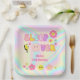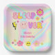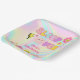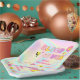 Traiga las buenas vibraciones con este nuevo dormido facial alegre color rosa pastel sobre platos de papel de cumpleaños.