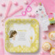 Plato De Papel Primer brunette de la comunión Chica Gold Damask