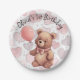 Plato De Papel Primer Chica de cumpleaños: oso rosa tradicional