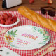 Añada a la fiesta de cumpleaños tropical o luau con platos personalizados diseñados con flores de acuarela tropical brillantes y divertidas y tipografía de piña y ALOHA y BIRTHDAY en rosa y naranja y personalizados con su nombre y edad (cambio a cualquier cumpleaños además de un primer cumpleaños). Póngase en contacto con el diseñador a través de Zazzle Chat o makeitaboutyoustore@gmail.com si desea modificar este diseño, en otro producto o si desea coordinar los suministros y decoraciones de los fiestas para completar su tema.