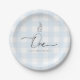 Plato De Papel Primer cumpleaños de Blue Gingham Bunny Rabbit