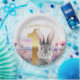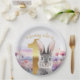 Plato De Papel Primer cumpleaños de conejo gris con flores silves