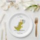 Plato De Papel Primer cumpleaños de Dinosaurio Yellow Green Grey