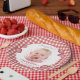¡Tiempo de fresa! Los primeros cumpleaños con temática de fresa dulce son ideales para un chica que ama las bayas dulces. El fondo de Gingham para un ambiente casero en la granja que es lo mejor para un fiesta de pasteles, postres con bayas, fruta fresca y todo lo que va con ella. Frutas acuáticas y pequeños acentos cardíacos. Fresa rosa y blanca.