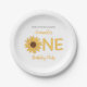 Placas de papel de primer cumpleaños de girasol. El diseño con un tema de girasol simboliza el coraje, una vida llena de entusiasmo y positividad es perfecta para una fiesta especial de cumpleaños de niños o chicas. Placa editable de papel de primer cumpleaños de Sunflower que puede editar en el sitio web de Zazzle. Es perfecto para los suministros de su fiesta.