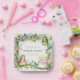 Vamos a sumergirnos en el encantador mundo de este caprichoso diseño Fairy First Birthday. La imagen cuenta con dos encantadores personajes de hadas. Alrededor de las hadas y de una tarta de cumpleaños bien decorada, un jardín mágico florece con flores intrincadamente ilustradas en tonos suaves. Los colores predominantes son unos verdes tranquilizantes que crean un ambiente de ensueño. Perfecto para celebrar el primer cumpleaños de un pequeño, la imagen capta la inocencia y la magia de la infancia.