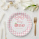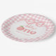Plato De Papel Primer cumpleaños de Pink Gingham Peach