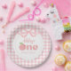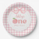 Placas De Papel De Primer Cumpleaños De Pink Gingham Peach