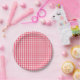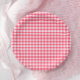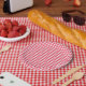 Añade un toque dulce de berry a tu mesa con estos platos de papel de gingham rojo.