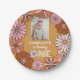 Un divertido naranja y un patrón floral rosado le da a estos platos de fotos personalizados un ambiente retro boho. Perfecto para fiestas de primer cumpleaños de chicas. Encuentra suministros fiestas en mi tienda.