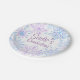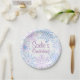 ¡Celebra un ÚNICO-Derland invernal por tu pequeño copo de nieve en casa! Los magníficos copos de nevadas acuarelas acentúan los lados de los bordes exteriores del plato en agradables tonos azules y violetas. Perfecto para una temática invernal y de un solo derland. Una bonita fuente de script en violeta para hacer que la redacción sea pop en el diseño.