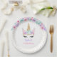 Plato De Papel Primer cumpleaños de Unicornio - Púrpura rosa Verd
