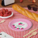 Platos de papel de cumpleaños para niños dulces y dulces con adorables fresas rosas. Suministros de fiesta ideales para la celebración del cumpleaños de un chica de un año.