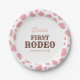 Primer rodeo occidental de placas de papel de primer cumpleaños de chica de color rosa occidental.