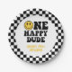 Plato De Papel Primer cumpleaños sonrisa de Checkered One Happy D