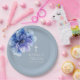 Estos platos de papel para primera comunión con flores de acuarela azul polvoriento modernas y elegantes pueden personalizarse con su información en tipografía moderna. Diseñado por Thisisnotme©