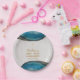 Plato De Papel Primera Comunión Niño Geoda Azul Mármol Cruz Dorad