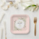 Pequeña Miss ONEmaravilloso plato de papel de primer cumpleaños con elegante vegetación en un fondo rosa y tipografía elegante. Diseñado por Thisisnotme©