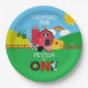 1º Aniversario Granja Animales Barnyard Placa de papel para niños. Personalice con nombre. Animales de granja, graneros, cerdos, vacas, ovejas, arcoíris, tractores, suministros de fiesta de la granja.www.SamAnnDesigns.com