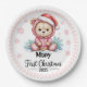 Celebra la primera Navidad de tu bebé con estos adorables platos de papel personalizados. Con un diseño festivo con la "Primera Navidad de [Nombre]" (el nombre es totalmente editable), estos platos le dan un toque especial a los fiestas Navidades, reuniones familiares o celebraciones de hitos.