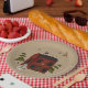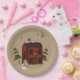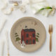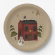 Las placas de papel de estilo primitivo muestran una casa colonial tradicional roja con nieve en la azotea. Un caprichoso hombre de nieve sobresale en frente. Árboles cubiertos de nieve llegan a la cima desde detrás de la casa y estrellas brillan en el cielo. Asegúrese de consultar la tienda para ver si hay otros productos de coordinación.