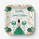 Plato De Papel Princesa de cabello dulce y marrón en verde