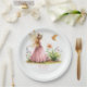 Un encantador ilustracion acuático con una princesa de hadas en un pequeño jardín encantado con un esquema de color verde esmeralda, rosa y dorado, decora este elegante y adorable plato de papel personalizado personalizado de una ducha de bebé. Perfecto para una celebración de primavera, eventos de Pascua, una fiesta de verano en el jardín, o una encantadora ducha de bebé con tema de picnic, o para una celebración de todo el año en honor de una madre que ama el bosque encantado, tema de hadas.