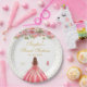Plato De Papel Princesa de pelo marrón floral rosa dulce dieciséi