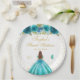 Plato De Papel Princesa de pelo marrón floral verde azulada dulce