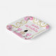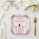 Esta invitación a la placa de cumpleaños incluye un marco dorado elegante, una bella princesa con el pelo castaño y un vestido rosa, flores y un globo. Esto es perfecto para una fiesta de cumpleaños.