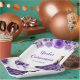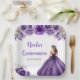 Este plato de Quinceanera cuenta con una hermosa princesa en una bola morada oscura con arreglos florales. Es perfecto para un fiesta quinceanera dulce.