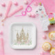 Plato De Papel Princesa Purpurina Rosa y Oro Cumpleaños