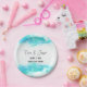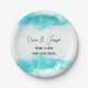 Papel de la boda de playa Placa la acuarela de las olas azules de © Cathy Thompson. Magnífico diseño de olas de color azul en la playa. Perfecto para Novia y Groom buscando un tema y un diseño únicos.