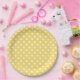 Añada estas placas de papel con puntos de polka amarillo y blanco a su mesa y añada una gran dosis de sol a su fiesta.