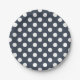 Plato De Papel Puntos de polka blanco sobre gris azul