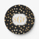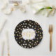 Plato De Papel Puntos Monogramados de Purpurina Negro y Oro