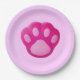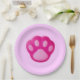 Conjunto de ocho placas de papel de 9" con una imagen de una púa de cachorro rosa brillante con almohadillas rosa blandas sobre rosa. Vea la taza de espresso, jarra, tetera y escayola de papel a juego. Ver la colección completa de la placa de esquina para niños en el FOOD/BEV | Sección de platos.